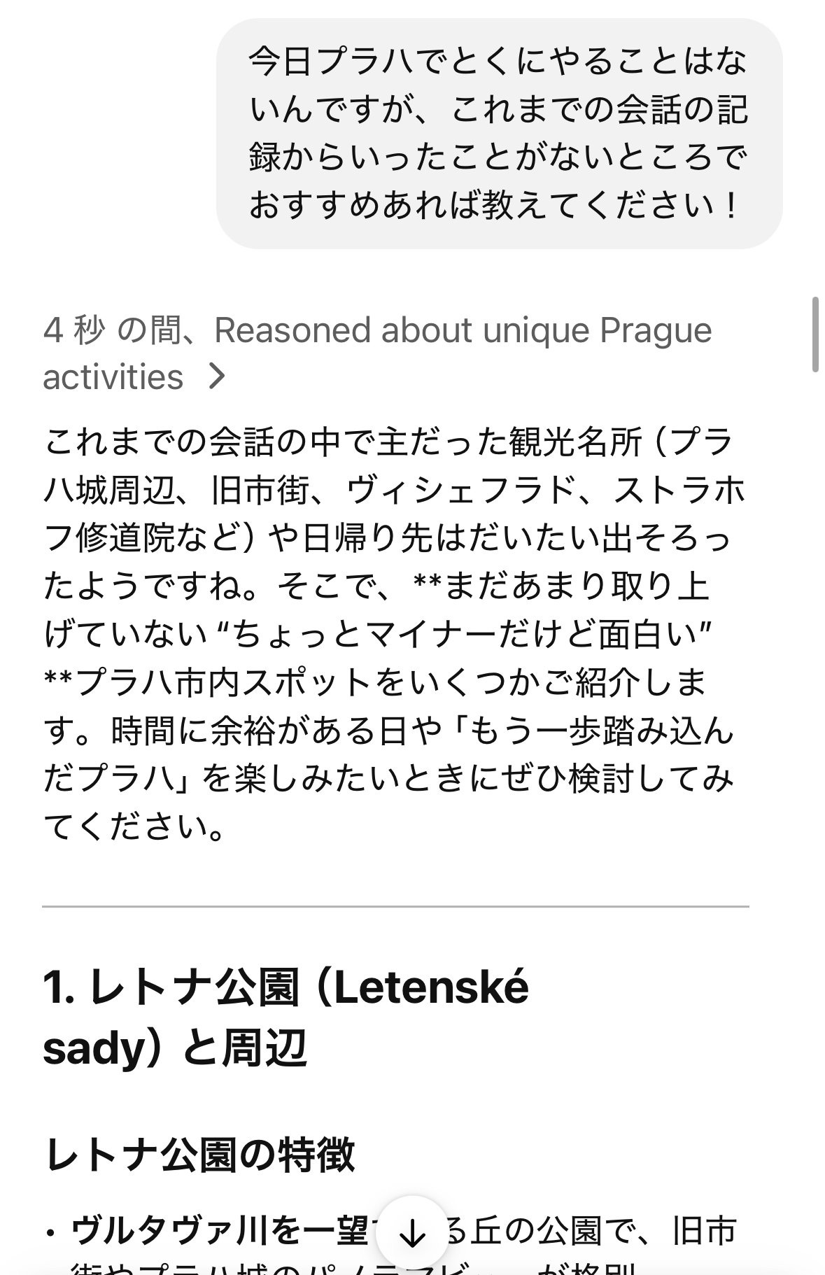 余談だけれども、1週間ちょっとほど旅をしようと思って、ほとんど予定を決めずにヨーロッパに久しぶりに行ったのだけれども、ChatGPTのおかげで旅が結構変わった。その都市の場所などを指定して、現地の言葉で調べた情報が出てきたり、自分のこのたびに求めることをプロジェクトで統一させて、プロンプトで書いておくことによって、自分が出会いたかったものなどとも出会えることができた。また歴史好きとしては、歴史的建造物を見ながらChatGPTに質問しつつ観光ができて、専属ガイドが一人ついたまま観光ができたような気がする。