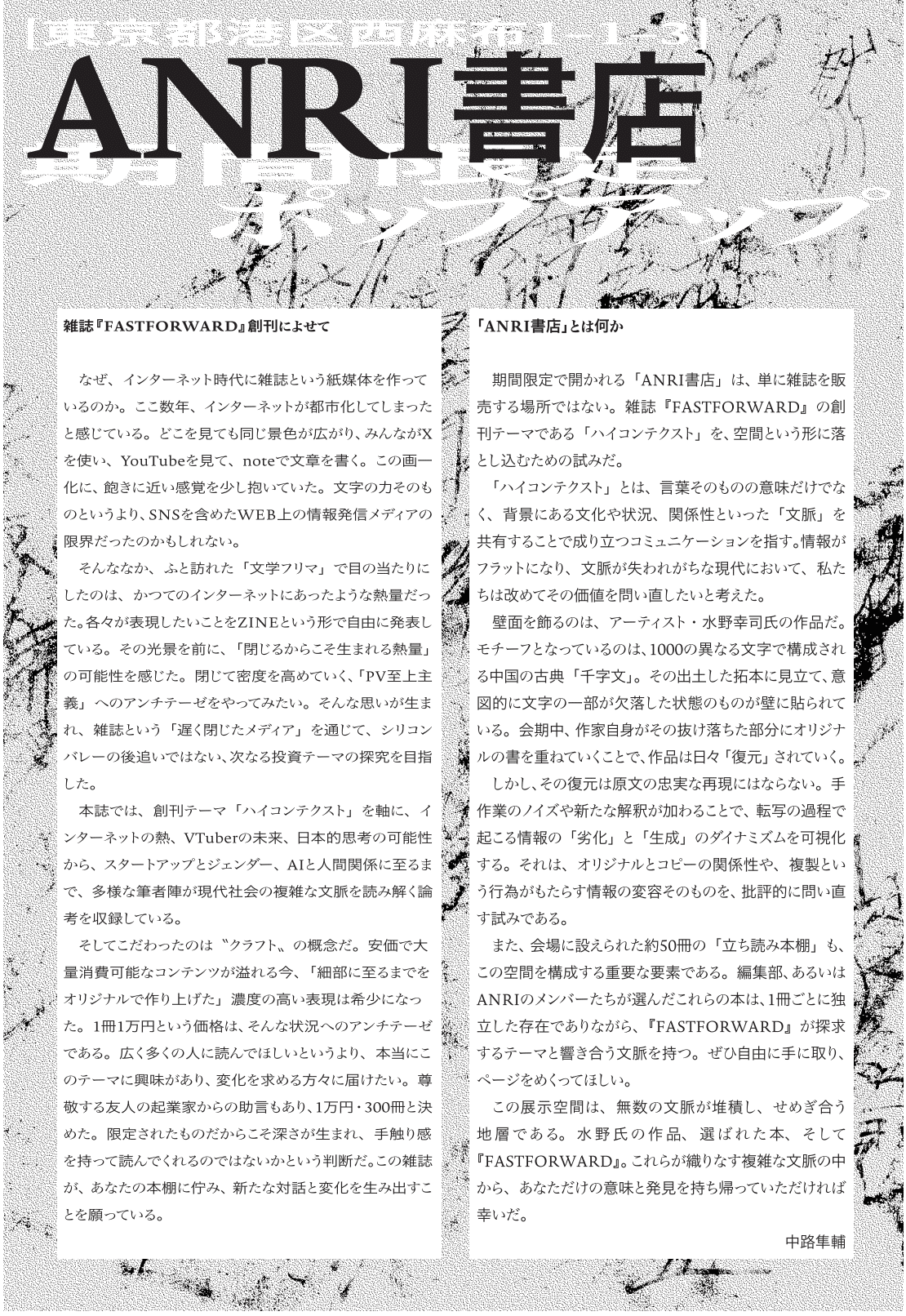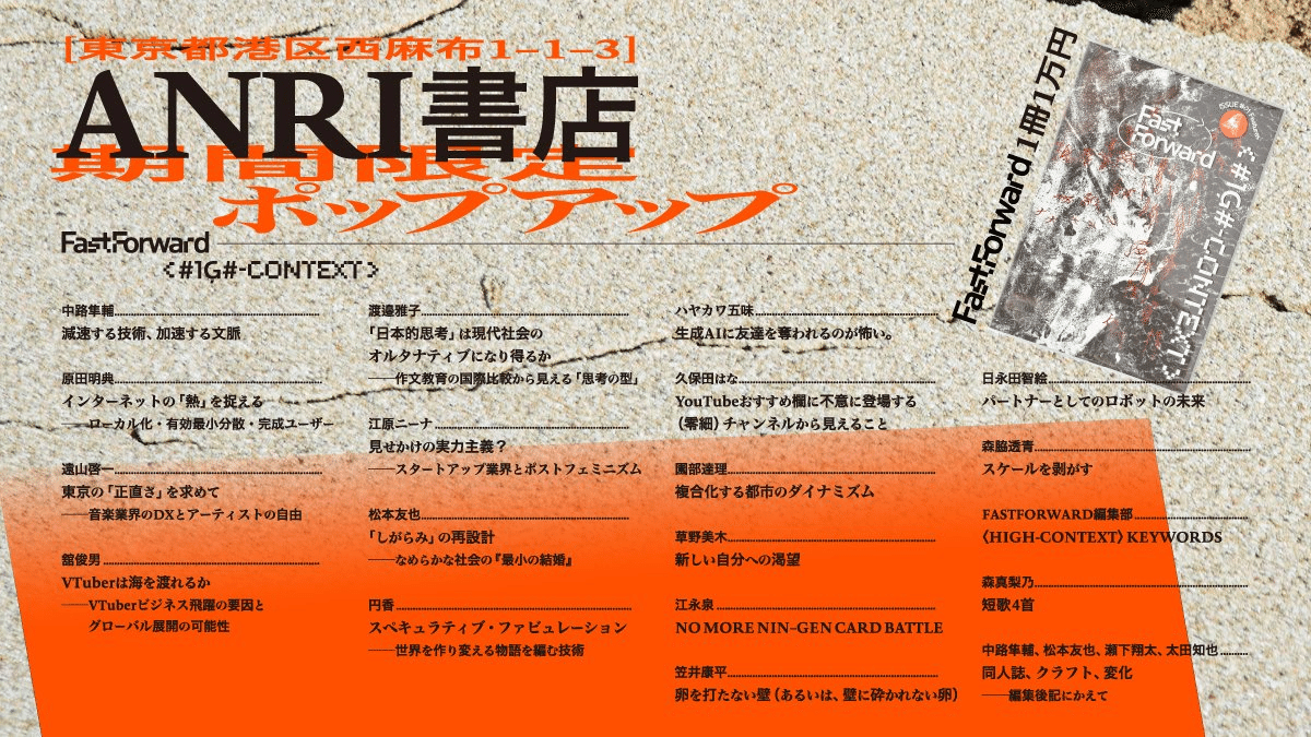 ANRI書店イベント(FASTFORWARD #1 HIGH CONTEXT 雑誌販売会)
